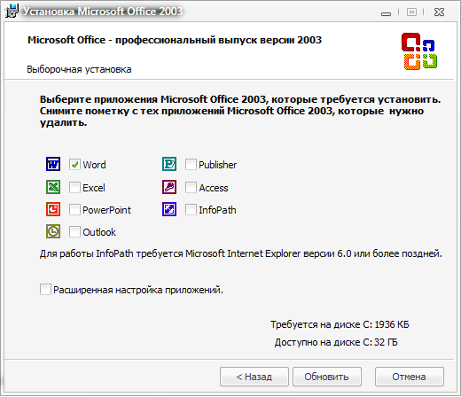• автоматическая установка обновлений офиса 2003, конвертера и обновлений к нему.