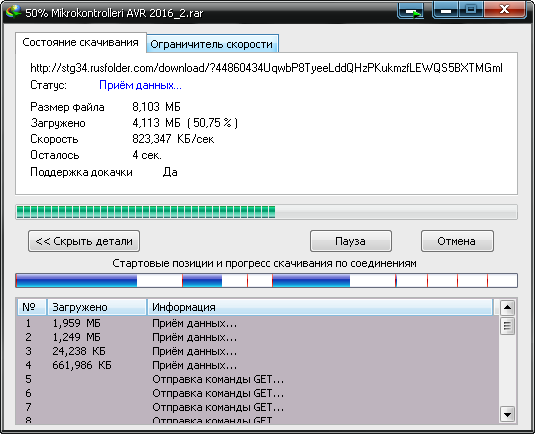 • Многократное использование соединений, закончивших загрузку своих частей файла без дополнительных стадий входа в систему
