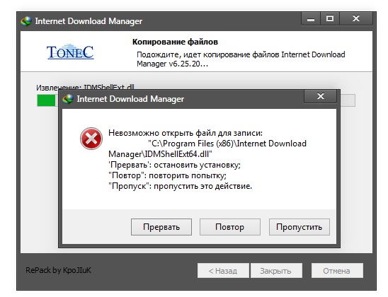Что за ерунда началась куча окон с "не удается передать закачку в idm"