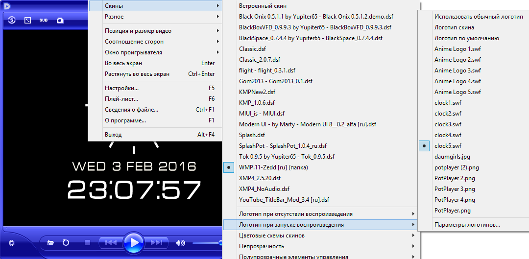 Скачать 780+ скинов для Daum PotPlayer (95,77 МБ):