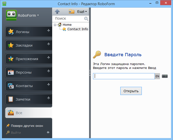 После регистрации на различных веб-сайтах приходится запоминать регистрационные данные и вводить их вручную. Эта программа позволит запомнить регистрационные данные и подставить их в нужные места на веб-сайтах при необходимости. AI RoboForm может делать следующие операции: сохранит пароли из парольной формы; автоматически заполнит пароли; автоматом зайдет в сетевые аккаунты; сгенерирует случайные пароли; шифрует пароли; может хранить пароли на любом съемном диске; спасает, восстанавливает и печатает пароли. AI RoboForm работает в операционной системе в качестве дополнения (плагина) к различным браузерам: Internet Explorer, Mozilla Firefox, Google Chrome, Opera.