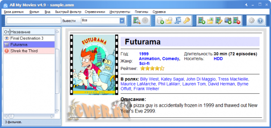 All My Movies - это программа, созданная специально для киноманов и тех, кто устал разбираться в своей коллекции фильмов или доверять это дело непонятным программам. Наша программа – это простой в использовании каталог. Вы сможете использовать ее для каталогизации любимых фильмов на DVD, CD или кассетах. Вам не нужно вписывать никаких деталей о флиьме - All My Movies все сам найдет и скачает с Интернета.