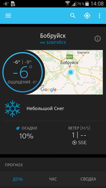 Странный wi-fi у Вас) Обратите внимание на скриншоты, в телефоне нет sim-карты. Программа установлена вчистую, прогноз работает, и замечу, очень точно. Что на градуснике за окном, что в программе (увы, градусник фотографировать не стал laughing)