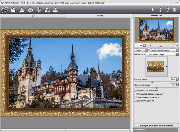 Программа поможет быстро украсить фотографии, создать уникальные поздравительные открытки, объявления или приглашения. Вы можете распечатать результат в высоком разрешении или поделиться с друзьями, опубликовав изображение сразу из программы. Можно обработать фотографию с помощью других программ AKVIS, например, создать рисунок карандашом или картину маслом, а после добавить последний штрих с помощью AKVIS Frames. Пользоваться программой очень просто. Разместите фото в рамке и запустите обработку — лишние края скроются, границы сгладятся, и вы получите прекрасно оформленное изображение.