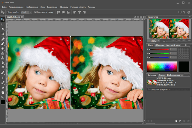 - Работа с файлами JPEG, PNG, BMP, TIFF, RAW.