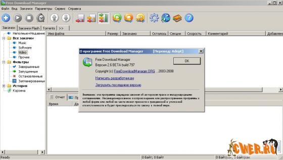 Free Download Manager поддерживает работу по расписанию, имеет богатый набор опций для управления закачками, поддерживает восстановление прерванных закачек и разбиение закачек на потоки. При загрузке мультимедийных файлов есть возможность предпросмотра еще незавершенных закачек.