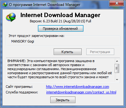 Скачать программу Internet Download Manager 6.23.21 Final (6,8 МБ):