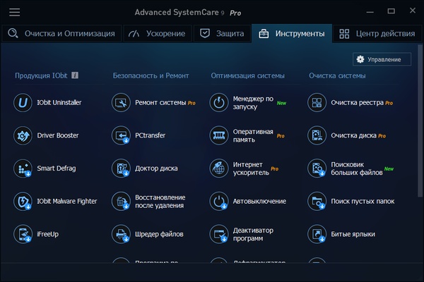 - Свыше 20 уникальных инструментов для обслуживания ПК. Advanced SystemCare Pro включает последнюю версию Toolbox компании IObit's, с более чем 20 уникальными инструментами, как для ежедневного обслуживания компьютера, так и для продвинутых нужд. Набор Toolbox содержит инструменты для очистки, оптимизации и ремонта системы, инструменты для улучшения безопасности системы и инструменты для полного контроля над компьютером.