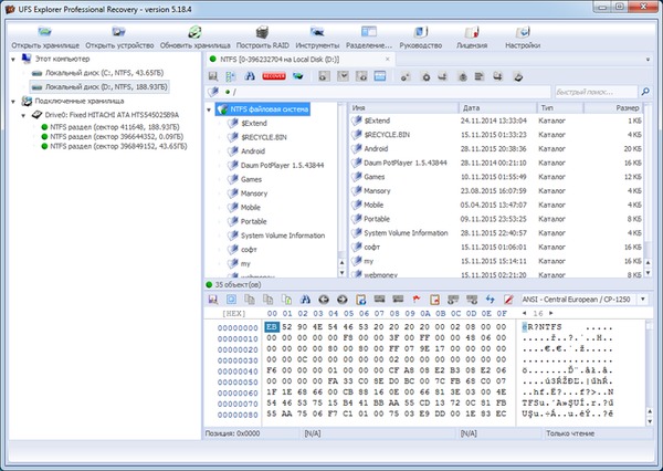 - Удобно и быстро копировать данные с поддерживаемых файловых систем, которые обычно недоступны в Windows;