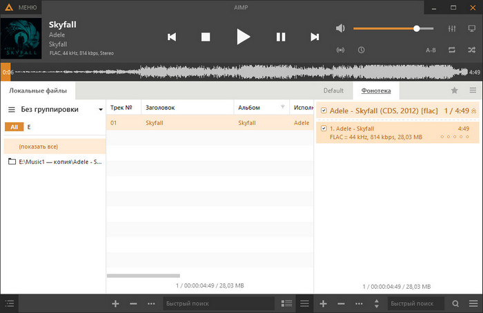- Скин по умолчанию: возможность скрывать области фонотеки и плейлиста