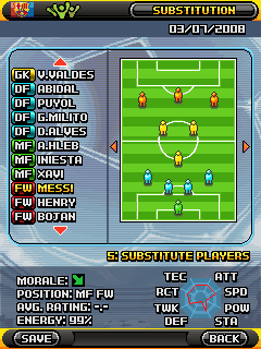 Выбирай свой любимый клуб из 8 различных лиг и более 200 возможных команд. Размеры экранов: 128х128, 128х160, 176х208, 176х220, 208х208, 240х320, 352х416.