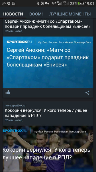 • Свежие события спортивного мира (публикации в соц.сетях).