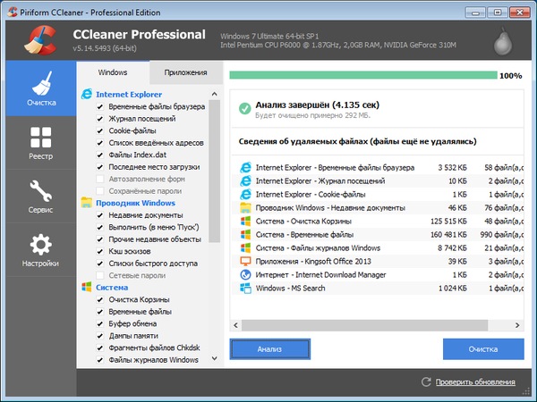 - Чистка данных других программ. CCleaner также очищает временные файлы и списки недавно открытых файлов других программ, например: Media Player, Safari, eMule, Kazaa, Google Toolbar, Netscape, MS Office, Nero, Adobe Acrobat, WinRAR, WinAce, WinZip и другие...
