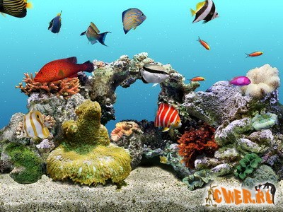 Заставка , выполненная в виде аквариума с красивыми рыбками. 24 вида тропических морских рыб.