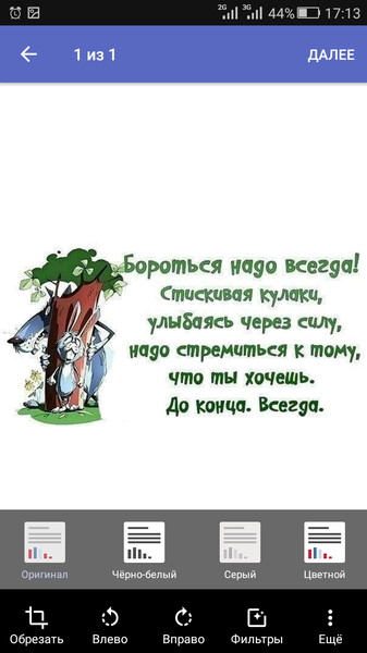 Если внешнее освещение не позволяет сделать качественный снимок, то можно использовать вспышку как подсветку. Но даже при плохом освещении приложение умудряется вытянуть максимум из скана. Встроенный стабилизатор изображения позволяет избежать смазывания картинки, терпеливо дожидаясь, когда камера перестанет дрожать; после этого фокусируется и делает кадр.