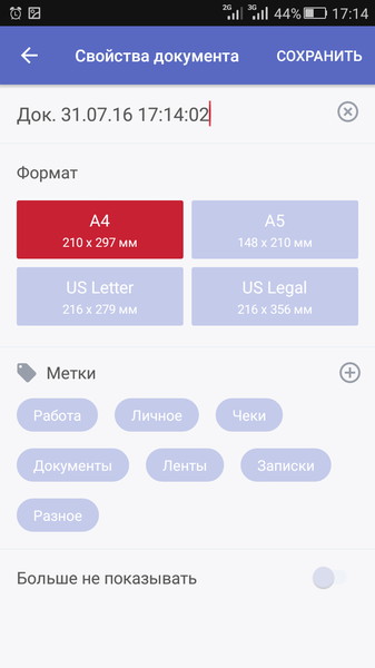 - Удобно хранить, помечать тегами и легко искать документы в приложении.