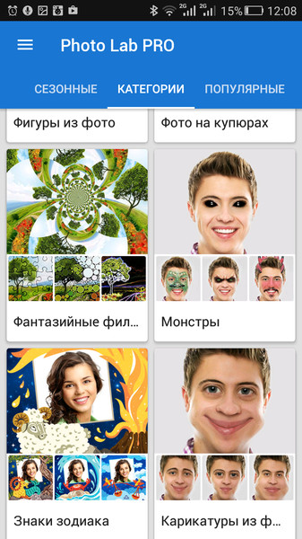 Одним из уникальных и очень интересных редакторов фотографий для Android является Photo Lab. Это настоящая лаборатория фотоприколов и красивых эффектов у вас на смартфоне. В Photo Lab вы найдете более 620 разнообразных эффектов, которые помогут создавать виртуальные открытки, смешные изображения, аватарки, обои на рабочий стол смартфона, анимацию и ещё многое другое. Благодаря этому приложению вы сможете делать фотомонтажи с точным подгоном лица. К примеру, вы сможете превратить себя в космонавта или Дарт Вейдера. В программе множество персонажей.