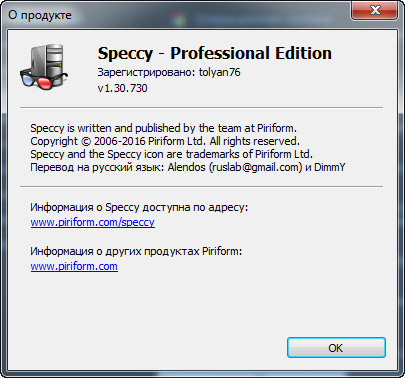 Speccy - программа для анализа аппаратной и программной части компьютера. Speccy отображает информацию об операционной системе и характеристики установленного железа. С помощью программы пользователь сможет узнать версию операционной системы, подробную информацию о процессоре, операционной памяти, винчестере, материнской плате, видео карте и др.Кроме того, отображаются температурные показатели процессора и видеокарты, а также рабочая частота RAM и скорость шины процессора.