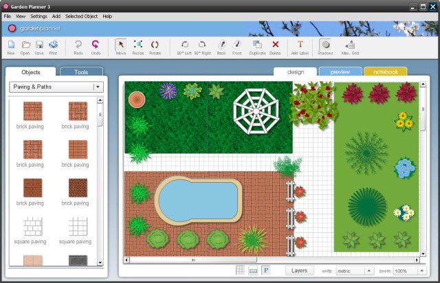 Garden Planner - очень удобная программа для проектирования сада Вашей мечты или ландшафта. Расположите растения, деревья, постройки и объекты, используя удобный 'drag and drop' интерфейс. Используйте различные инструменты, чтобы быстро создать мощение, дорожки и заборы. Цвет листвы можно изменять.