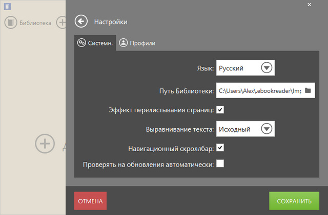 - Опционная ассоциация с поддерживаемыми (.epub .mobi .fb2 .cbr .cbz) типами файлов (для установки)