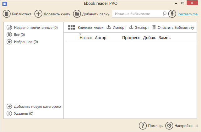 Icecream Ebook Reader - это читалка книг в epub, fb2, mobi, pdf, cbr, cbz форматах для Вашего компьютера. Программа позволяет читать электронные книги и управлять собственной библиотекой на Вашем ПК или ноутбуке под ОС Windows. Теперь Вы сможете превратить экран компьютера в современную и удобную читалку книг с возможностью листания страниц, использования закладок, поиска, контроля прочитанности книг и др.