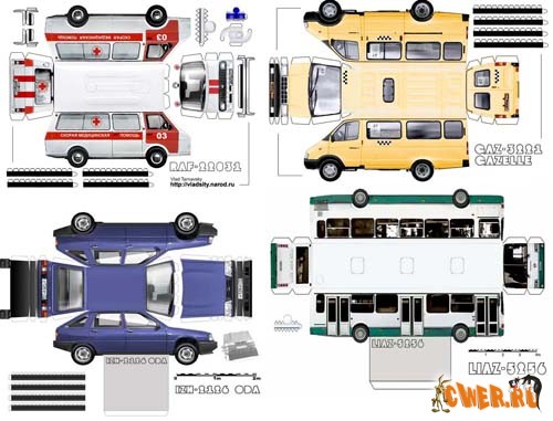 Скачать шаблоны автомобилей из бумаги (6,7 МБ):