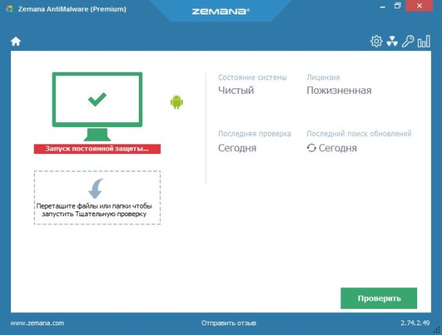 Скачать портативную программу Zemana AntiMalware Premium 2.74.2.49 (26,72 МБ):