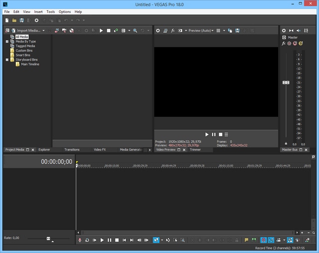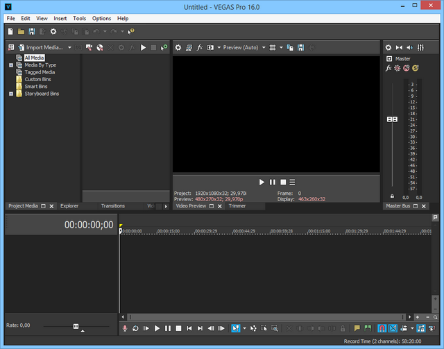 - Более тёмная цветовая палитра. Интерфейс Vegas Pro обогащён новой цветовой схемой, которая обеспечивает оптически нейтральное окружение для оптимизированного просмотра цветов и увеличения комфорта при работе в затемнённой монтажной студии.