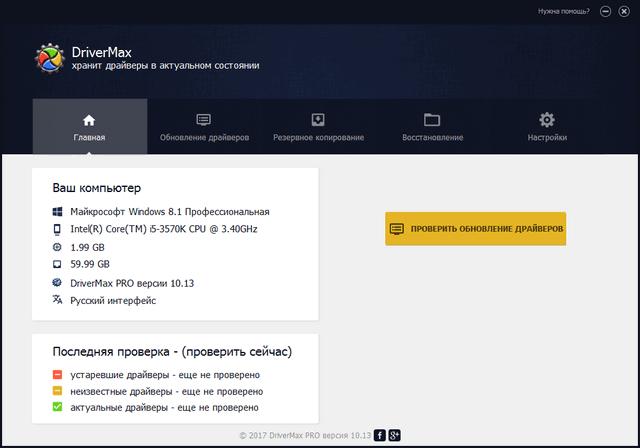 - Возможность проверки на предмет наличия более свежих версий драйверов.