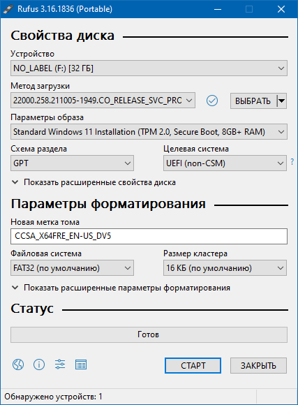 Скачать портативную версию Rufus 4.9.2256 Final (1,61 МБ):