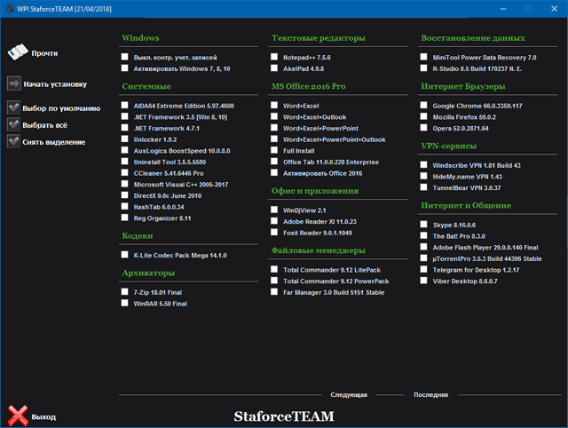 Скачать пакет StaforceTEAM WPI (4,47 ГБ):