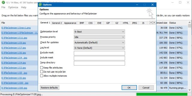 FileOptimizer - приложение для сжатия различных видов файлов без потери их функциональности: изображений, документов, программ, архивов (EXE, DLL, PNG, PDF, JPEG, DOCX, GIF, EPUB, CBZ, CHM, ODT, OBJ, PPTX, WEBP, ZIP, XLSX, SWF, TIF, APPX, APK, APNG, AIR, BMP, PUB, SCR, ICO, MP3, JAR, LIB и многих других). Они займут меньше места на жестком диске, а пользоваться ими сможете как и до сжатия.