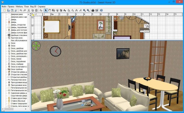 Sweet Home 3D - приложение для 3D моделирования интерьера поможет виртуально расставить мебель по комнатам, выбирая наиболее удачное расположение имеющихся элементов. Во время работы можно использовать готовые 3D-модели, которые представлены на официальном сайте. Sweet Home 3D позволяет предварительно просмотреть полученный интерьер в 2D или 3D варианте.