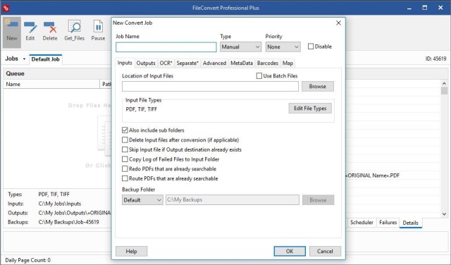 Для этого вам нужно создать новое задание, в котором вы указываете путь до папки приходящих со сканера изображений в формате TIFF, указываете папку для сохранения преобразованных файлов, промежуток времени, через который программа должна проверять исходящую папку на наличие новых сканов (можно установить ручную проверку) и все. FileConvert был специально разработан для небольших офисов, в составе которых нет выделенного для таких задач ИТ-персонала.
