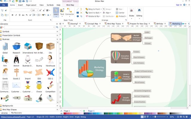 Edraw Max - программа для рисования диаграмм, графиков, бизнес планов и т.д. Это идеальное решение для создания профессионально-выглядящих блок-схем, организационных схем, сетевых диаграмм и бизнес карт, а также для построения планов, UML диаграмм, трудового процесса, структур программ, сетевых диаграмм, чартов и графики, указательных карт и диаграмм баз данных.