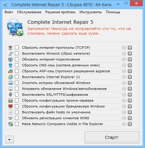Возможности Complete Internet Repair: