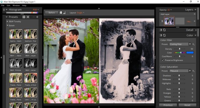 Exposure X — автономная программа и плагин для Photoshop и других графических редакторов, позволит улучшать фотографии различными эффектами: имитация кадра из художественного фильма, симуляция съемки аналоговой фотокамерой. Программа дает возможность изменить экспозицию на свой вкус и воссоздать особенности, характерные для пленок разных производителей: яркие цвета Velvia, богатые черные тона Kodachrome или чувствительность Ektachrome.