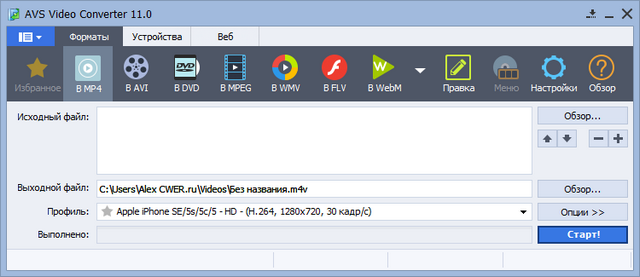 - Видео для Вебсайта: Flash SWF, Real Video и WMV видео.