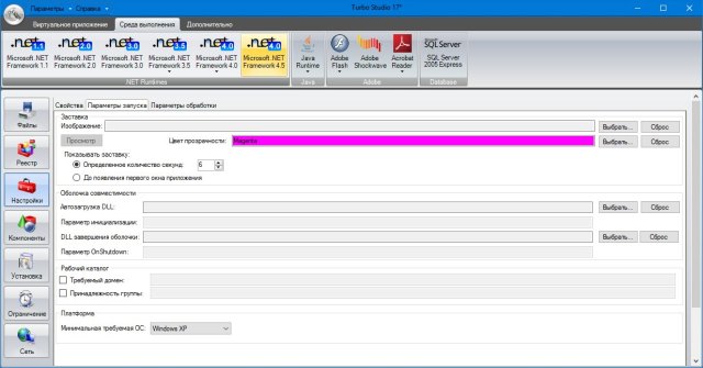 - Выполнение .NET без платформы .NET. Внедрение зависимостей сред выполнения платформ .NET, Java, AIR, and SQL CE непосредственно в виртуальные приложения и их запуск на настольных компьютерах полностью чистых от этих платформ.
