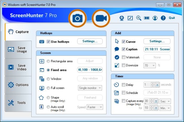 ScreenHunter - программа для получения снимков экрана (скриншотов) с возможностью их обработки и редактирования. Можно получать изображения всего экрана, отдельных окон или заданной области. Есть уникальная функция - получение снимков только определенных объектов в окнах, а также редко встречающаяся функция - захват текста.
