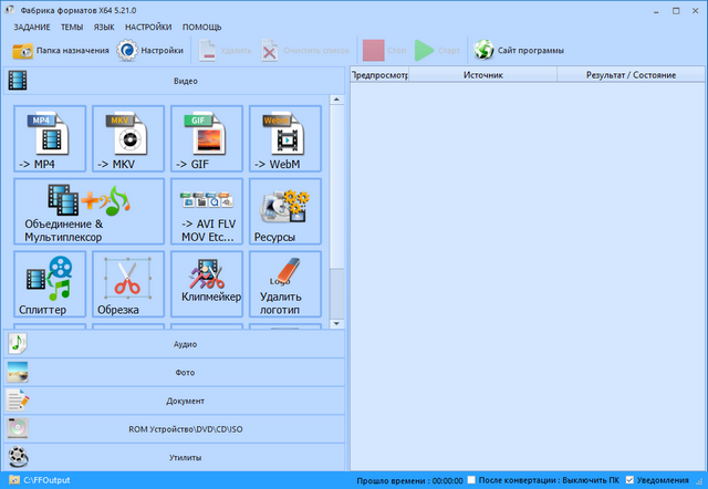 - Конвертирование всех популярных форматов видео, аудио и изображений