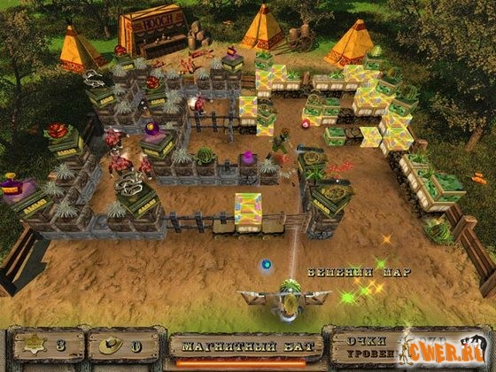 Трехмерный арканоид в ковбойском стиле, в котором вы будете защищать маленький городок на Диком Западе от проделок злобного шамана. Чтобы одолеть противника, вам придется пройти множество уровней, которые нужно очистить от блоков всевозможной формы и свойств.