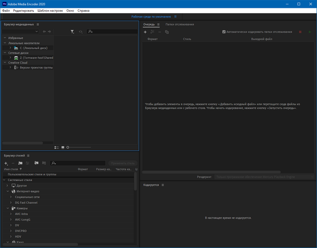 - Браузер медиаданных. В Adobe Media Encoder теперь включен хорошо знакомый браузер медиаданных, позволяющий легко находить медиафайлы и выполнять их предпросмотр.