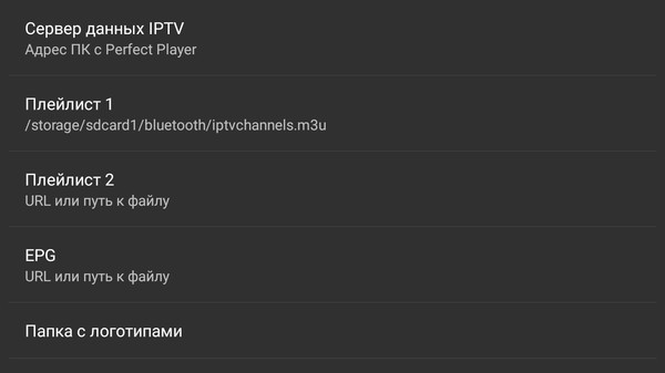 - Возможность мгновенного получения обновленного плейлиста, EPG, логотипов от сервера данных IPTV (ПК версия Perfect Player), введя в настройках только лишь адрес Сервера данных IPTV.