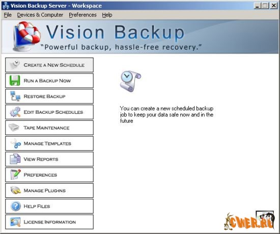 Vision Backup Enterprise – надежный инструмент централизованного резервного копирования и восстановления данных, охватывающий все сетевые устройства. Программа позволяет копировать и восстанавливать данные на множестве носителей, включая CD-RW/DVD-RW, Tape Drives, FTP/SFTP/FTPS, USB/Flash Drives, Hard Drives/NAS/ZIP/JAZZ и сетевые/удаленные компьютеры. Кроме того, продукт позволяет защитить сохраняемые данные, используя 448-битное шифрование для защиты от неавторизированного доступа. Программа может создавать резервные копии данных автоматически через заданные промежутки времени. Очень проста в работе и построена на простом использовании мастеров.