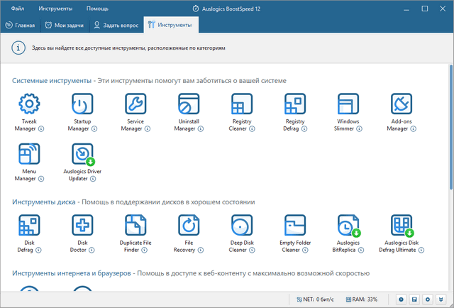 • Tweak Manager. Позволяет откорректировать сотни настроек Windows, чтобы ускорить Ваш компьютер