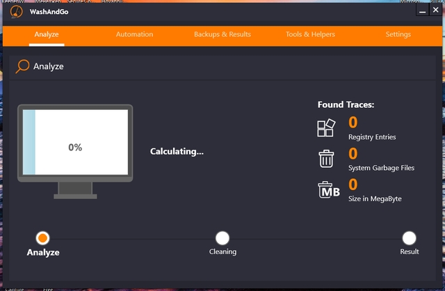 Программа сообщает пользователям, сколько дискового пространства было освобождено, так что выгоду от запуска можно увидеть сразу. WashAndGo одним щелчком мыши начинает изучение жесткого диска. Пользователи затем могут просмотреть список обнаруженных мусорных файлов и разрешить WashAndGo приступить к их устранению. Осторожные пользователи могут включить опцию безопасности из WashAndGo для того, чтобы восстановить в случае необходимости, все удаленные файлы в течение 14 дней после очистки.