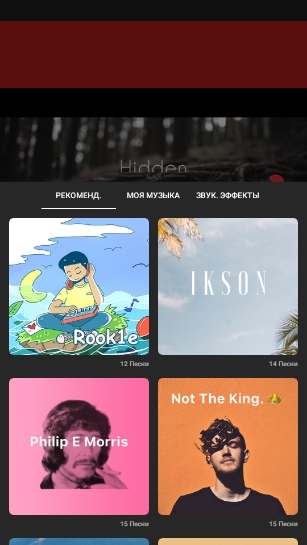 - Вставить музыку на видео, добавляйте музыку рекомендованную Inshot