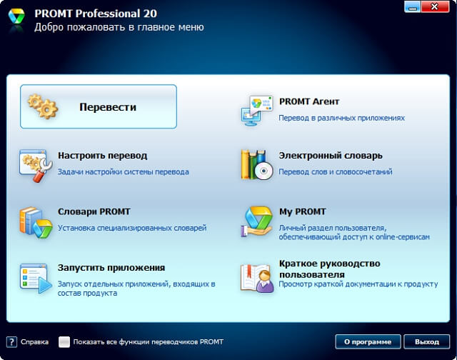 Переводчик PROMT Professional предназначен для профессионального перевода документов различных форматов, веб-страниц, поисковых запросов, электронной почты, а также предоставляет ряд дополнительных возможностей, например извлечение терминологии из текстов или пакетный перевод файлов.