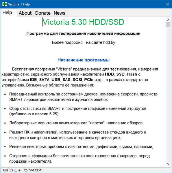 Victoria HDD/SSD — программа, предназначенная для диагностики, исследования, тестирования и мелкого ремонта жёстких дисков, SSD-накопителей, карт памяти, а также любых других накопителей в операционной системе Windows.